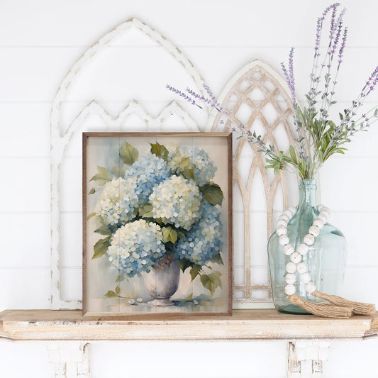 Blue Hydrangeas Wooden Art