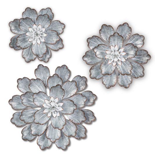Galvanized Dahlia Wall Flowers - Set of 3