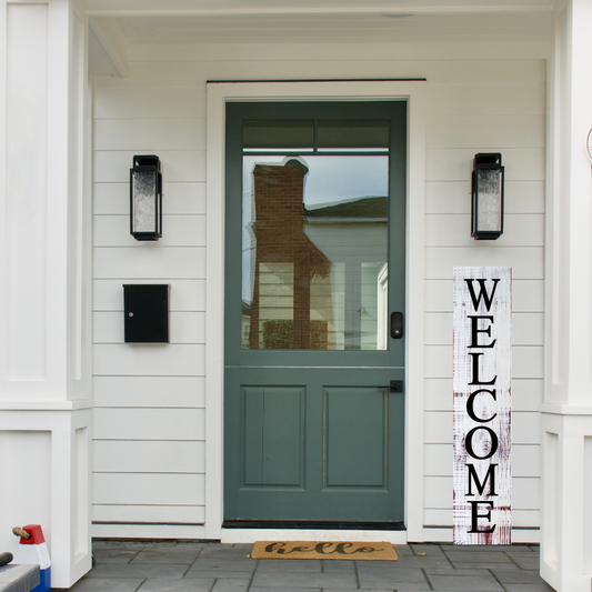 White-washed Welcome Porch Leaner