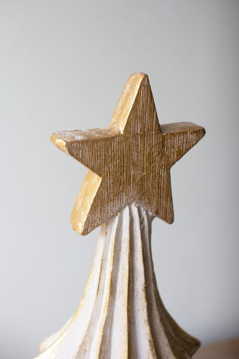 Make this resin Christmas topiary #1 the centerpiece of your village or tabletop decor. This 12" diameter Christmas tree topped with a gold star stands 28" tall. Circle it with a wreath and surround it with presents! Free shipping!