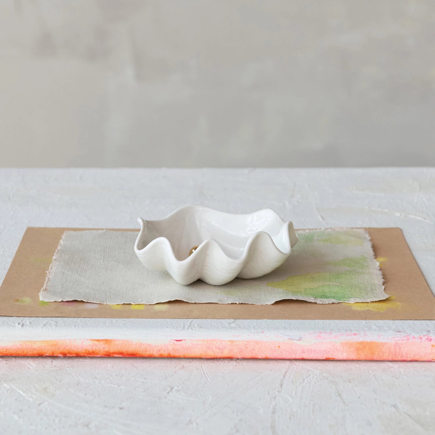 Stoneware Clam Shell Dish w/ Faux Pearl